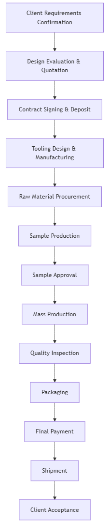 - Client pays tooling cost + partial deposit (typically 30%-50%).